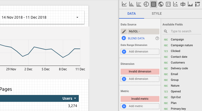 Bạn sẽ nhận được thông báo lỗi “Configuration Incomplete: Invalid Dimension, Metric or Filter selected” – tạm dịch “Cấu hình chưa đầy đủ: Đã chọn thứ nguyên, chỉ số hoặc bộ lọc không hợp lệ”. Các trường hoặc bộ lọc sai hiển thị màu đỏ trong bảng Thuộc tính của biểu đồ. Thông thường, sự cố này xuất hiện sau khi nguồn dữ liệu được kết nối với báo cáo hoặc biểu đồ đã được thay đổi. Nó cũng có thể xảy ra nếu cấu trúc nguồn dữ liệu đã thay đổi.
