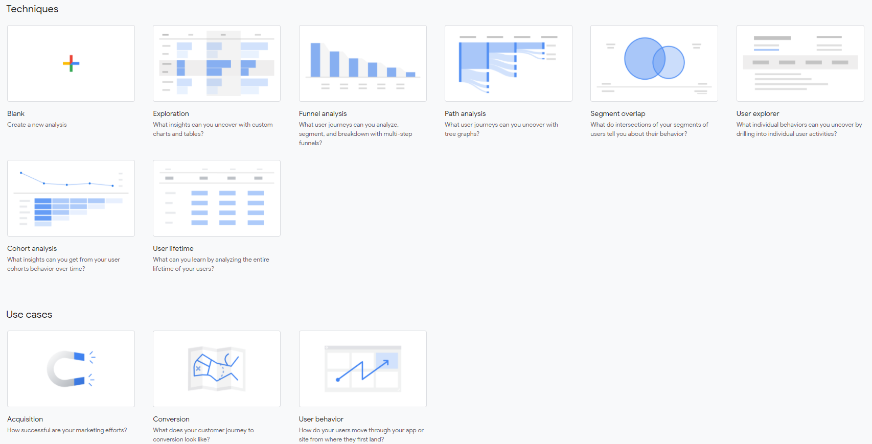 Các báo cáo Analysis trước đây chỉ dành cho các khách hàng 360, giờ đây GA4 đã được áp dụng tính năng này để phân tích nâng cao, các báo cáo này sẽ giúp bạn phân tích hành trình của khách hàng trên cả app và web. Chi tiết tính năng và cách sử dụng các báo cáo, bạn có thể đọc tại đây